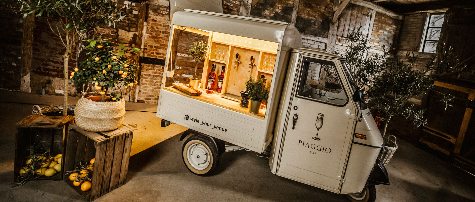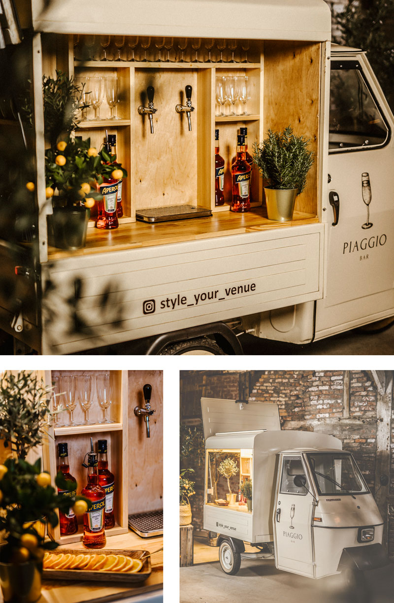 Erlebe italienisches Dolce Vita mit unserer charmanten Piaggio Bar von Noahs Little Italy Love – ein nostalgischer Hingucker und mobiler Genussmoment für dein Event. Dank der integrierten Bar werden deine Gäste mit erfrischenden Drinks in einzigartigem Ambiente verwöhnt. Buche jetzt dein unvergessliches Highlight und bringe den authentischen italienischen Charme zu dir nach Hause!